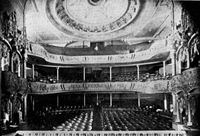 The opera house’s dome-shaped auditorium seated 1,323 spectators. The stage was expansive, measuring 53 feet wide and 65 feet deep, and included an orchestra pit at the front. Sophisticated folding chairs on the balconies allowed easy movement between rows.